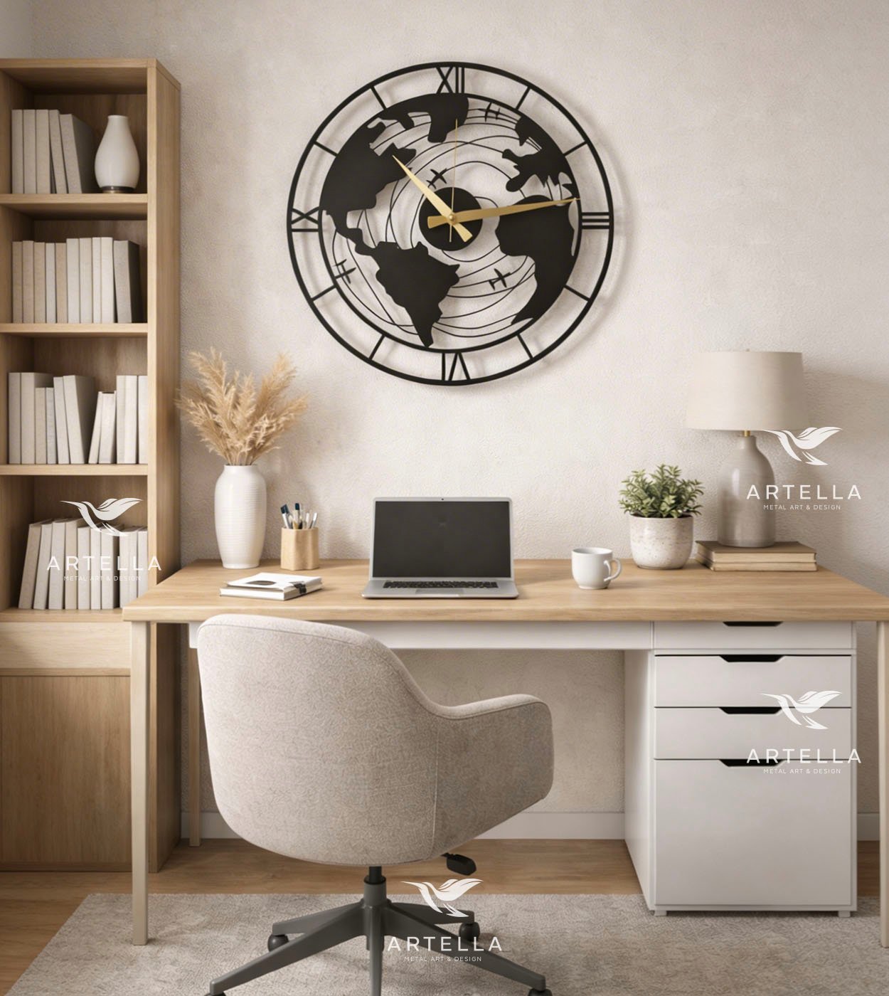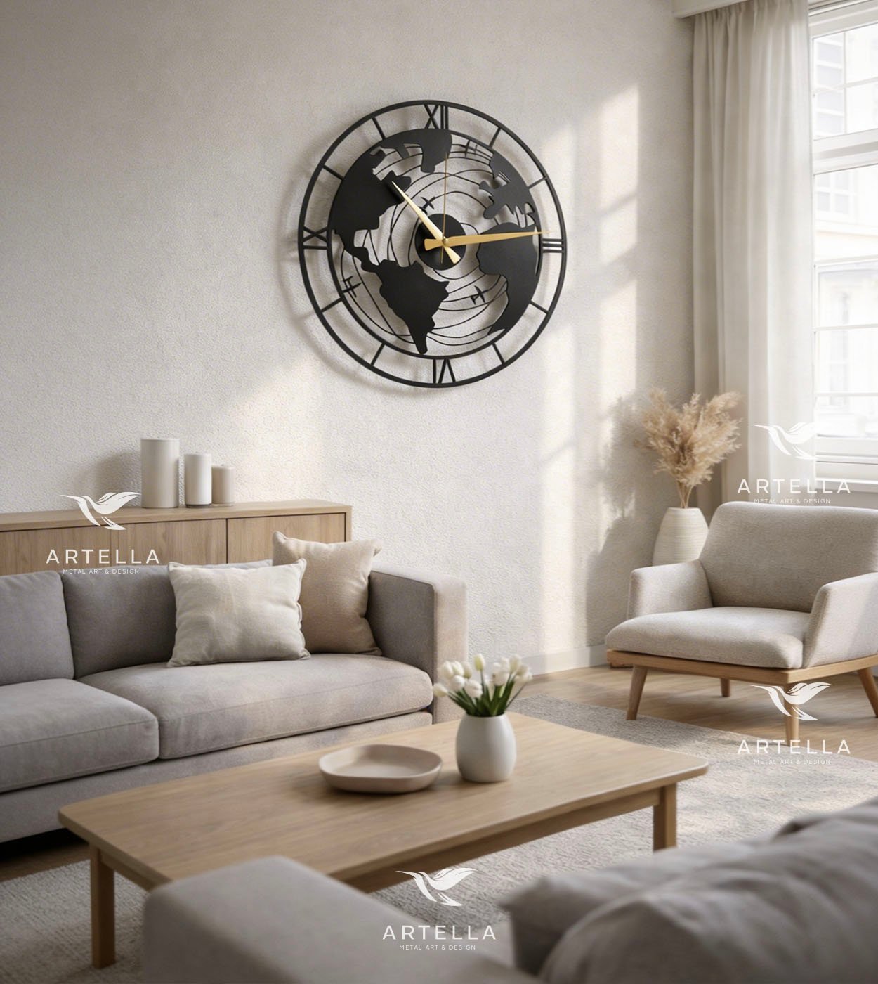 Ta ura je izdelana iz visokokakovostnih kovin, s natančno pozornostjo do detajlov. Ustvarjena je, da traja in pusti brezčasen vtis v vašem prostoru.